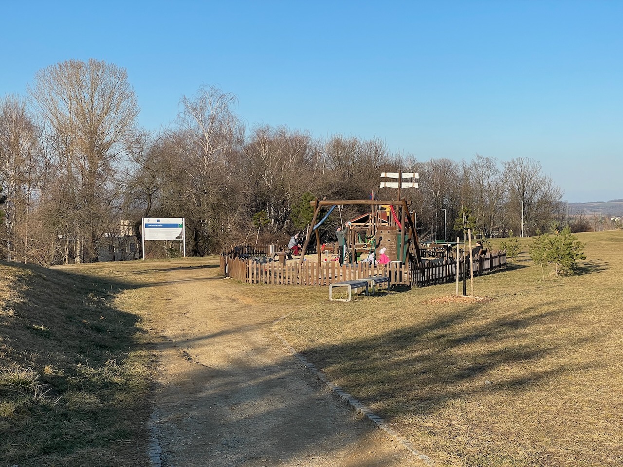 Na hřišti v Ořešíně sice rostou stromy, ale dosud nedorostly do potřebné velikosti. Navrhované řešení zahrnuje instalaci stínících plachet.