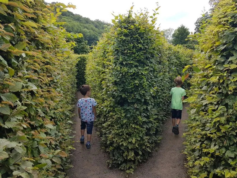Rozmístění: Rostliny budou vysázeny v řadách podél cestiček, aby vytvořil přirozené stěny labyrintu, ústící do plošinky veprostřed. Použit mrazuvzdorný a větru odolný druh rostlin, nenáročný na údržbu.