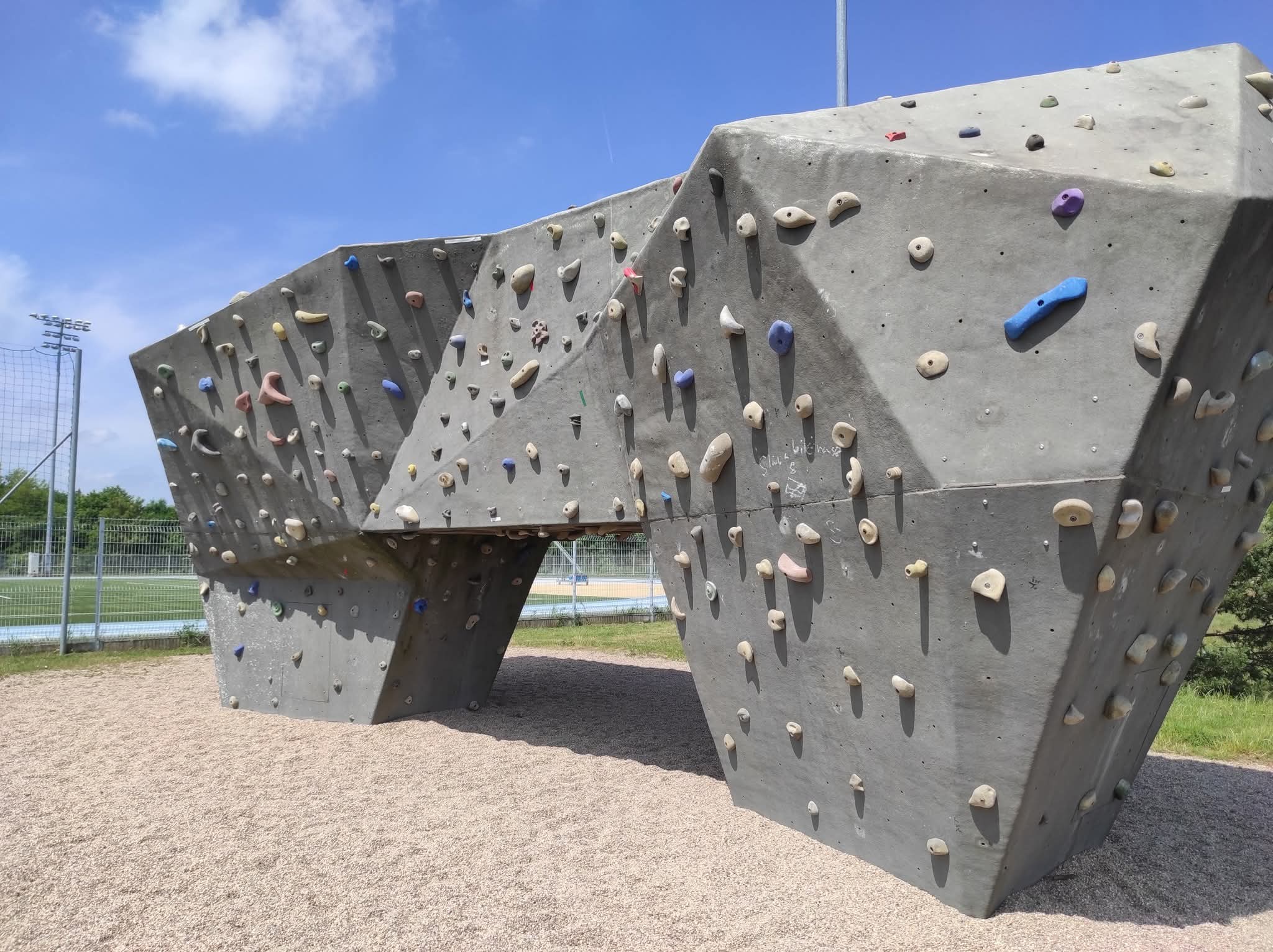 Venkovní bouldrová stěna pro širokou veřejnost.