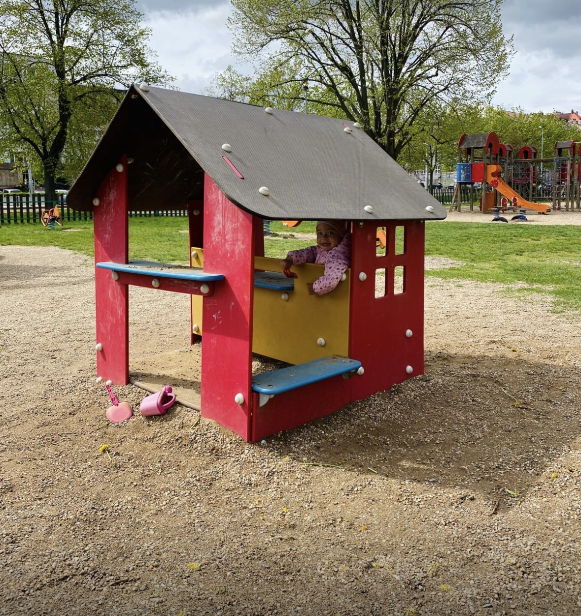 Ráda bych na dětské hřiště přidala prvek Hrací domek, trampolínu zabudovanou do země a houpačku na pružině. Klasická houpačka tu sice je, ale v podstatě se na ní nedá houpat, pokud se nesejdou děti přibližného věku a váhy. Také je spíše pro starší děti.