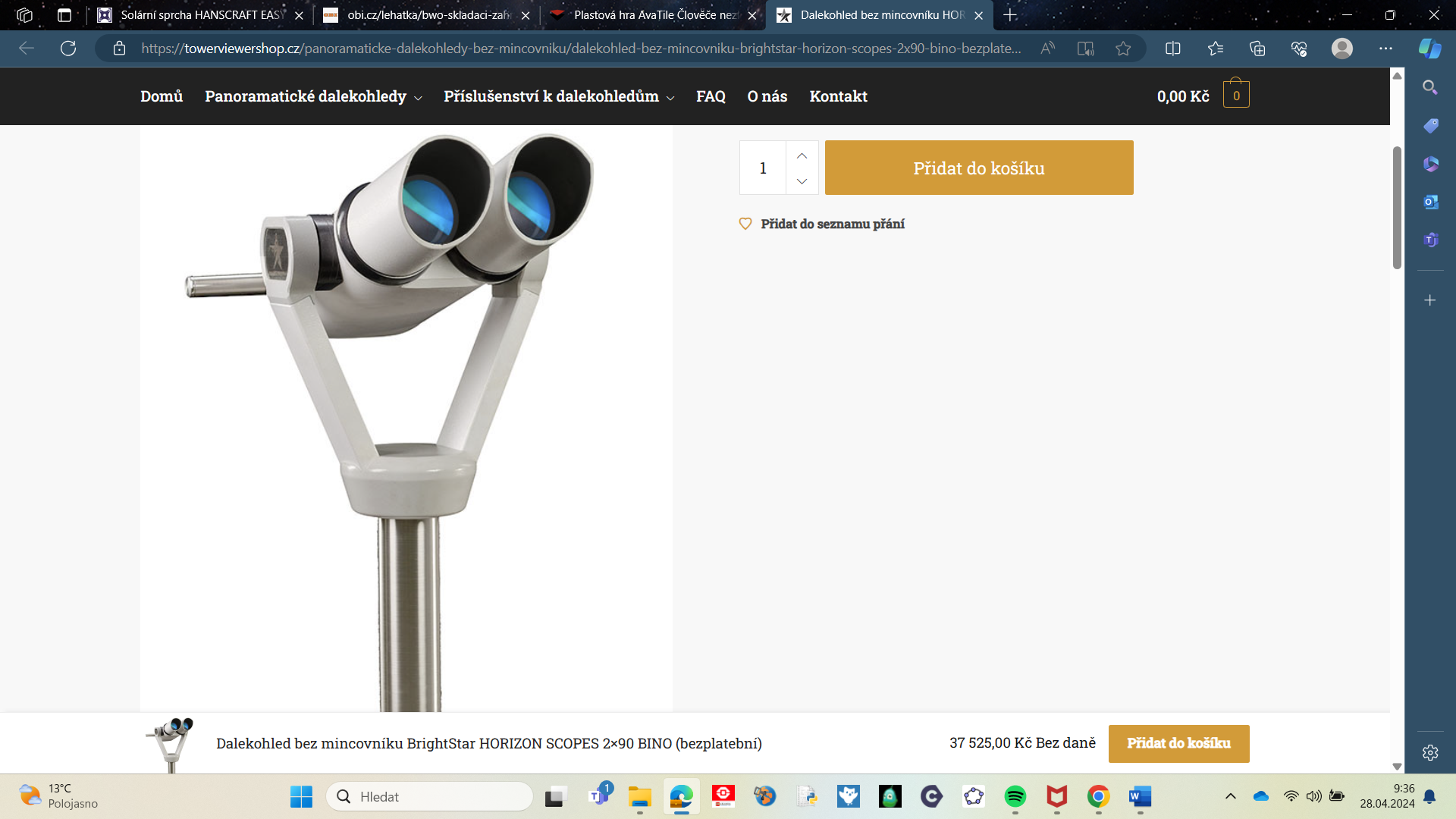 • Bezpečná 360stupňová plošina (kolem dalekohledu) nebo 180° (použitá z jedné strany, např. na balkóně u zábradlí) nabízená samostatně Provedení bez ostrých hran.