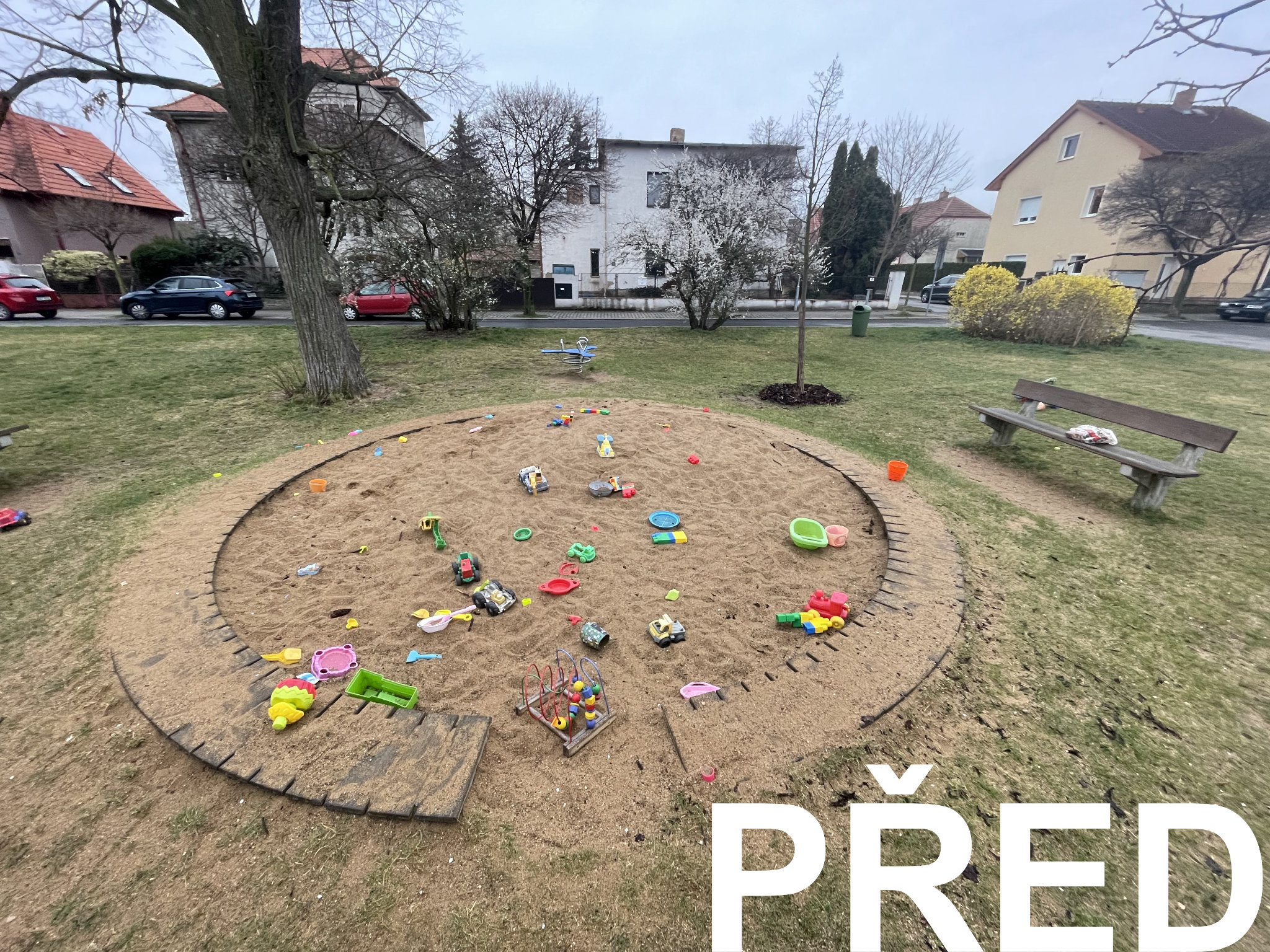 Na některých pískovištích se během posledních let objevují volně přístupné hračky. Je to poměrně příjemný bonus, pokud jdete kolem a chcete si Vy nebo Vaše děti neplánovaně pohrát. Bohužel se bábovičky a kyblíčky často vykutálí z pískoviště nebo je dokonce do vzdálenějších částí parku roznesou psi nevychovaných pejskařů.